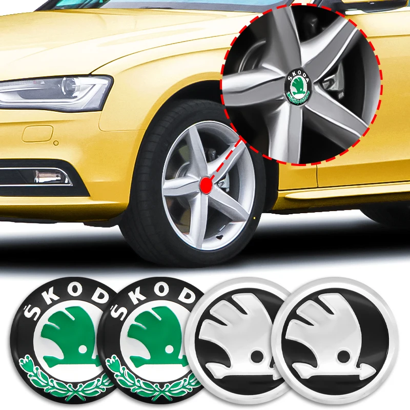 Name: Pegatina para neumático de coche, accesorios para Skoda Rapid GT Superb Fabia Kodiaq Octavia kamiq, 56mm, logotipo del Centro 3D, 4 Uds.